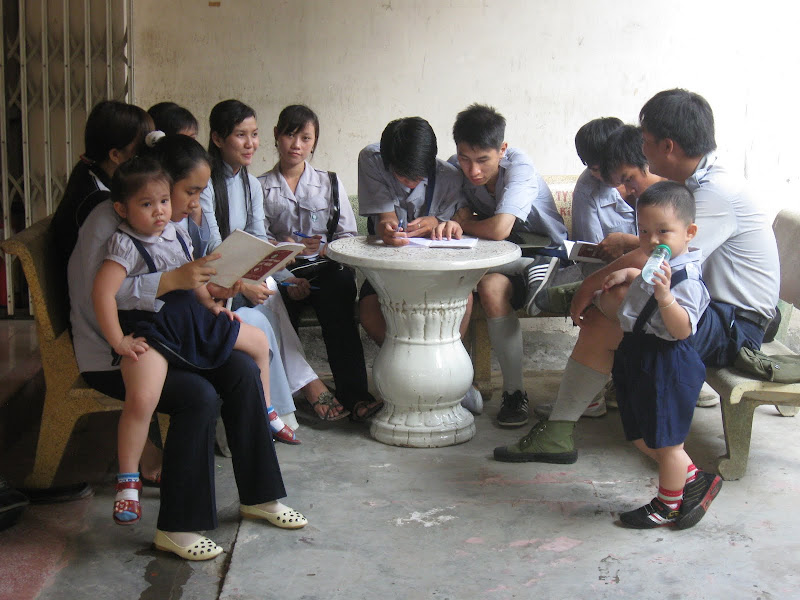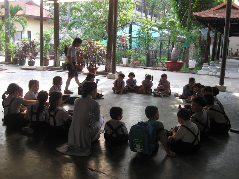 vào lúc 15h40 thì gia đình vào bậc học...a Long và c Quyên vẫn tiếp tục "được" phụ trách sen non...