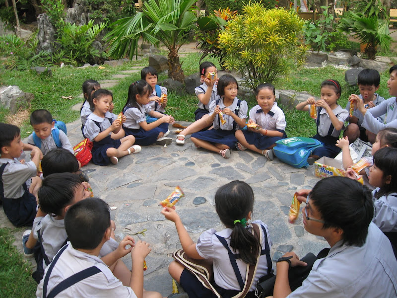 và cho các em ăn bánh... công nhận làm sen non sướng thật...
