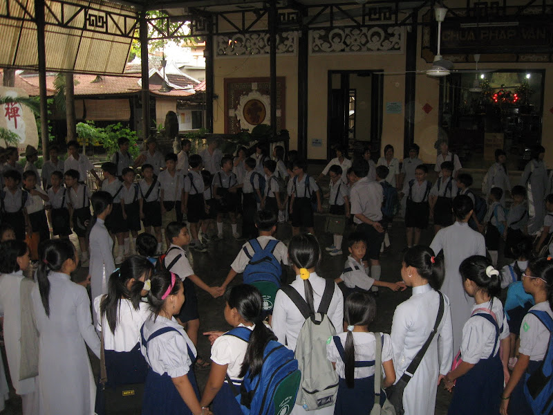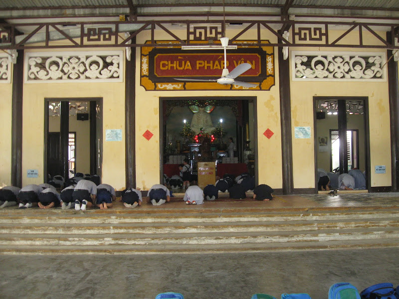 Tuần này đến lượt đoàn sen non trực... Gia đình đang lễ Phật đầu ngày...